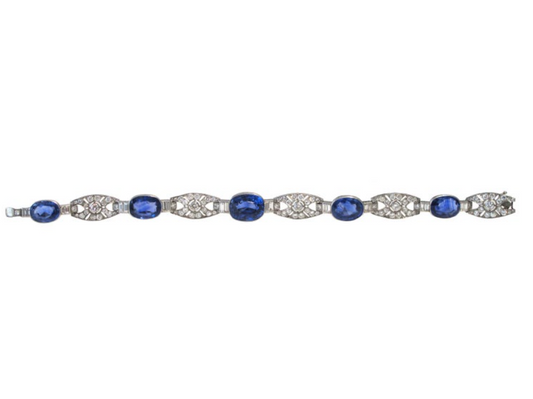 GIA Art Deco Sapphire and Diamond Link Tennis Bracelet