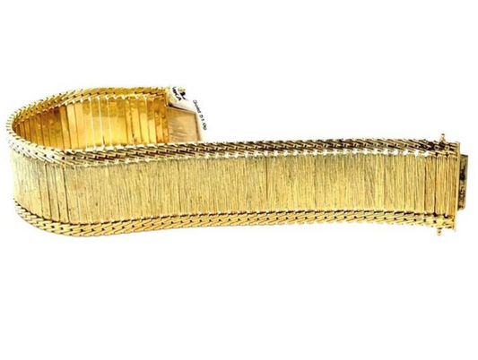 French Textured 14k Yellow Gold Retro Style Bracelet, Flexible Hinged Design