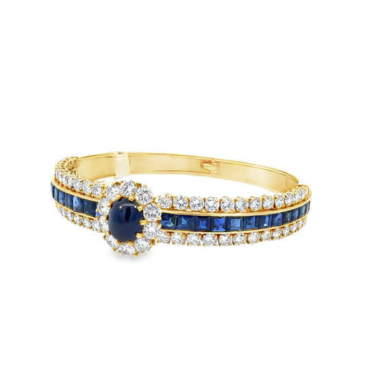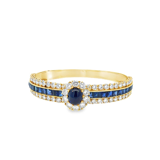 14K Gold Diamond and Sapphire Bracelet, 117 Round Brilliant Diamonds, 5.50 Carats