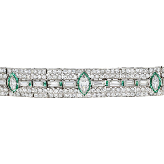 1920’s Art Deco Diamond and Emerald Platinum Tennis Bracelet