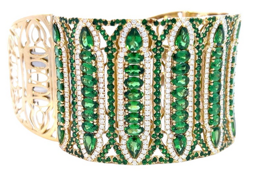 Wendy Yue Diamond and Garnet Wide Cuff Bangle Bracelet