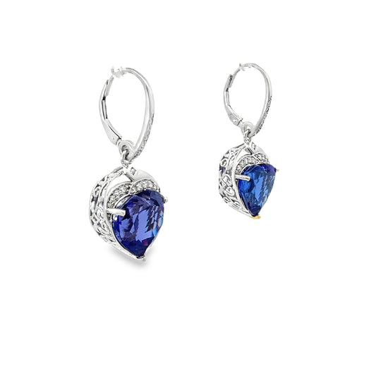 21.28 Carat Heart-Shaped Tanzanite and Diamond 18K White Gold Dangle Earrings