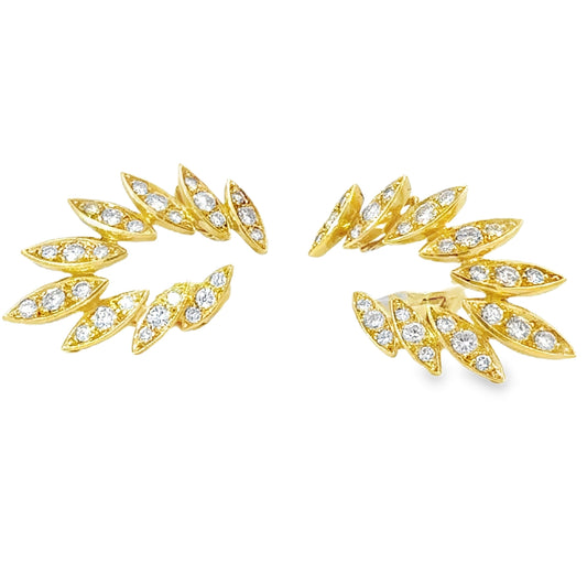 Retro Diamond Ear Climber Earrings in 18K Yellow Gold, Lever Back Clip-On, 54 Diamonds