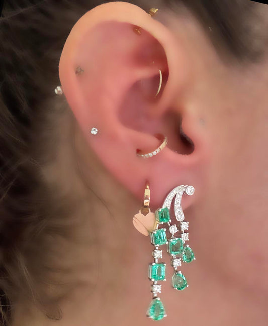 Luxury Emerald Diamond Dangle Earrings – 18K White Gold, 4.25ct Emeralds, 6.30ct Diamonds