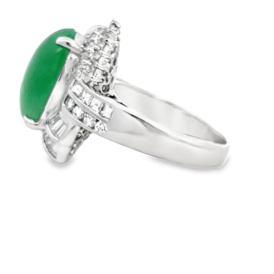 Platinum Green Jade Ring with 11.44 Carat Gemstone and 1.95 Carat Fancy Cut Diamonds
