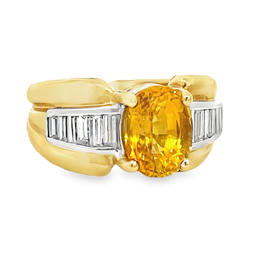 Retro 3.75 Carat Yellow-Orange Sapphire and Diamond Cocktail Ring in 18K White and Yellow Gold