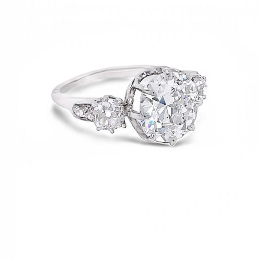 GIA Antique Cushion Cut Diamond Three-Stone Engagement Ring