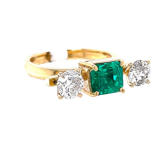 1.51 Carat Emerald and Diamond Three-Stone Ring