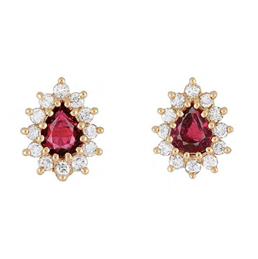 GIA Certified No Heat Red Ruby and Diamond Stud Earrings