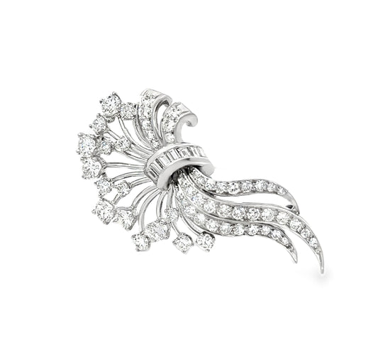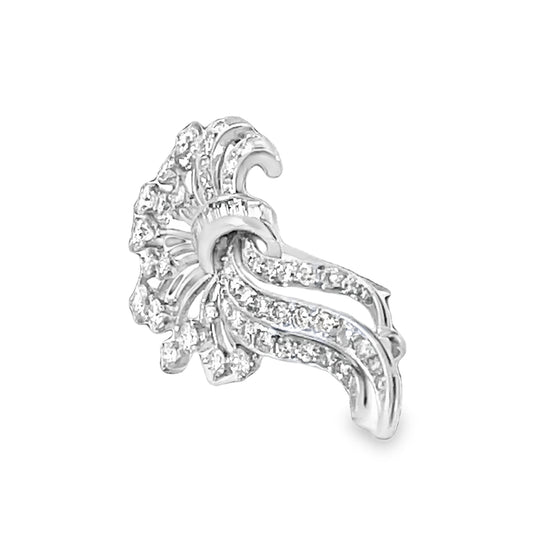 Art Deco Diamond Floral Bow Brooch in 14 Karat White Gold, 2.75 Carats