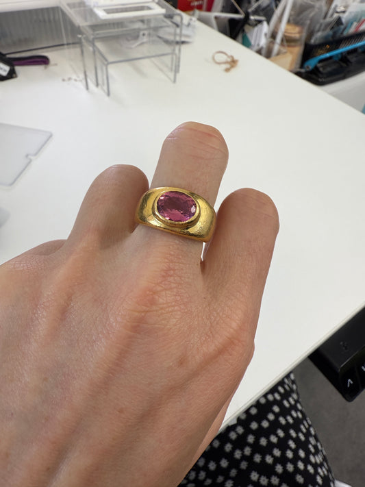 Tourmaline Yellow Gold Cigar Band Ring in 18 Karat Matte Finish