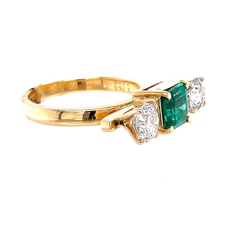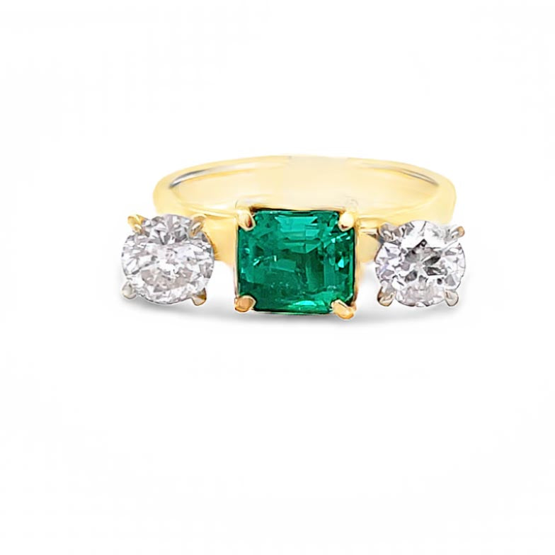 1.51 Carat Emerald and Diamond Three-Stone Ring