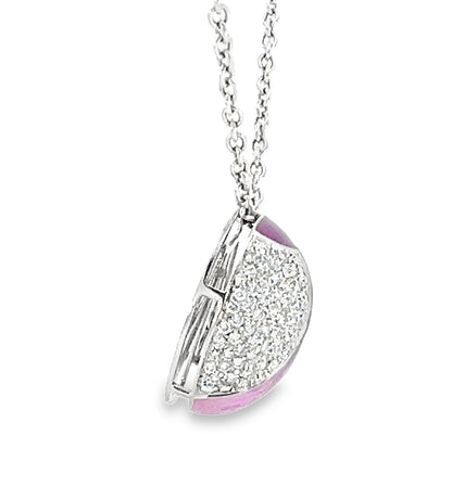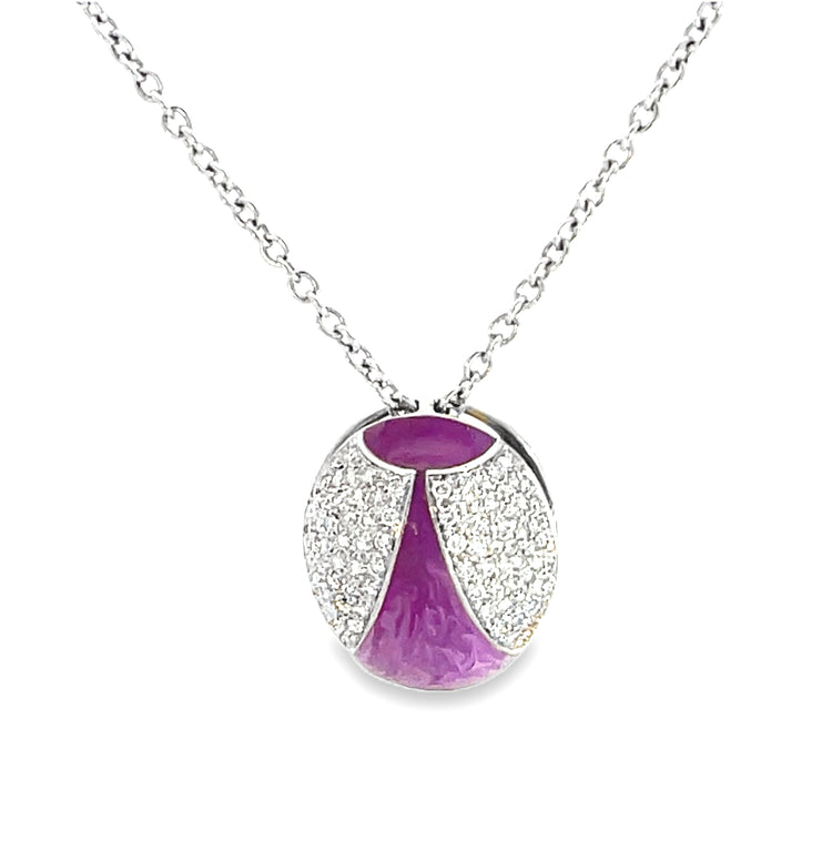 18K White Gold Purple Enamel Orb Pendant Necklace with 2.06 Carats Diamonds, 16 Inch Chain