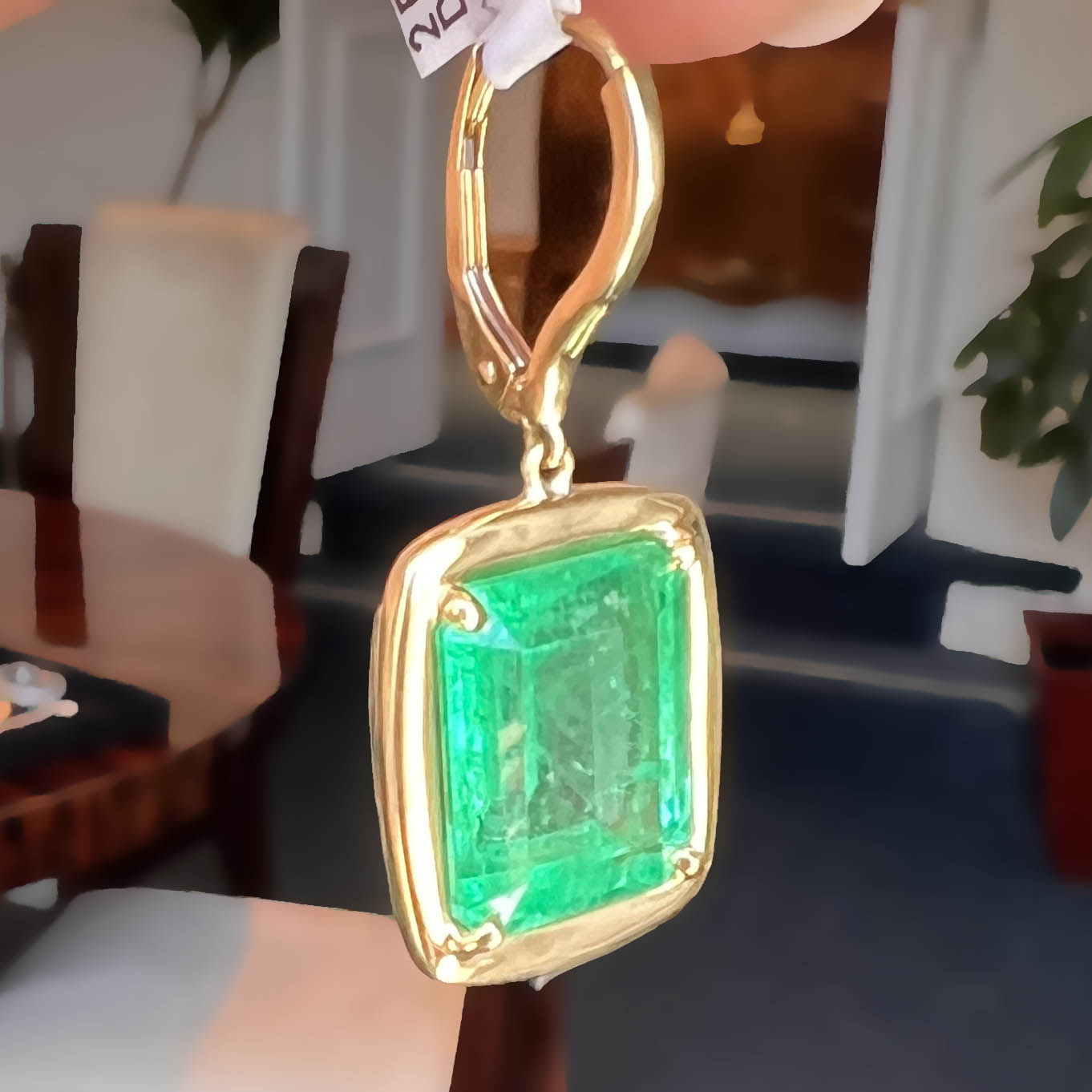 18K Yellow Gold 17.90 Carat Colombian Emerald Dangle Earrings