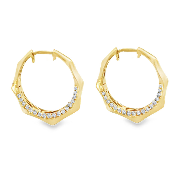 18K Yellow Gold Diamond Geometric Hoop Earrings, 0.41 Carat Pave