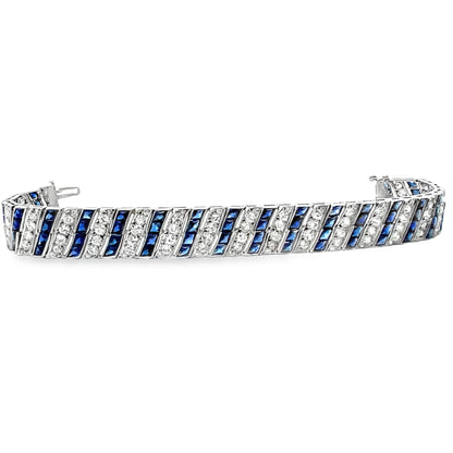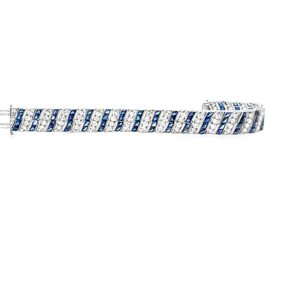 Art Deco Platinum Filigree Tennis Bracelet with 6 Carats of Diamonds and Blue Sapphires