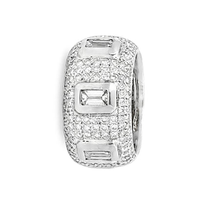 Diamond Baguette Band Ring in 18K White Gold, Pave and Bezel Set, Size 8