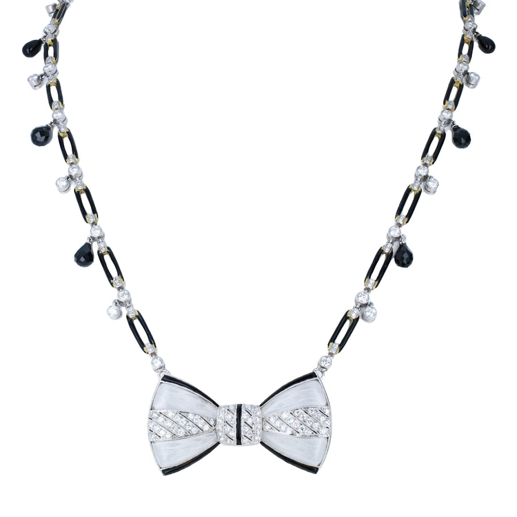 Fred Leighton Diamond, Onyx & Rock Crystal Bow Necklace