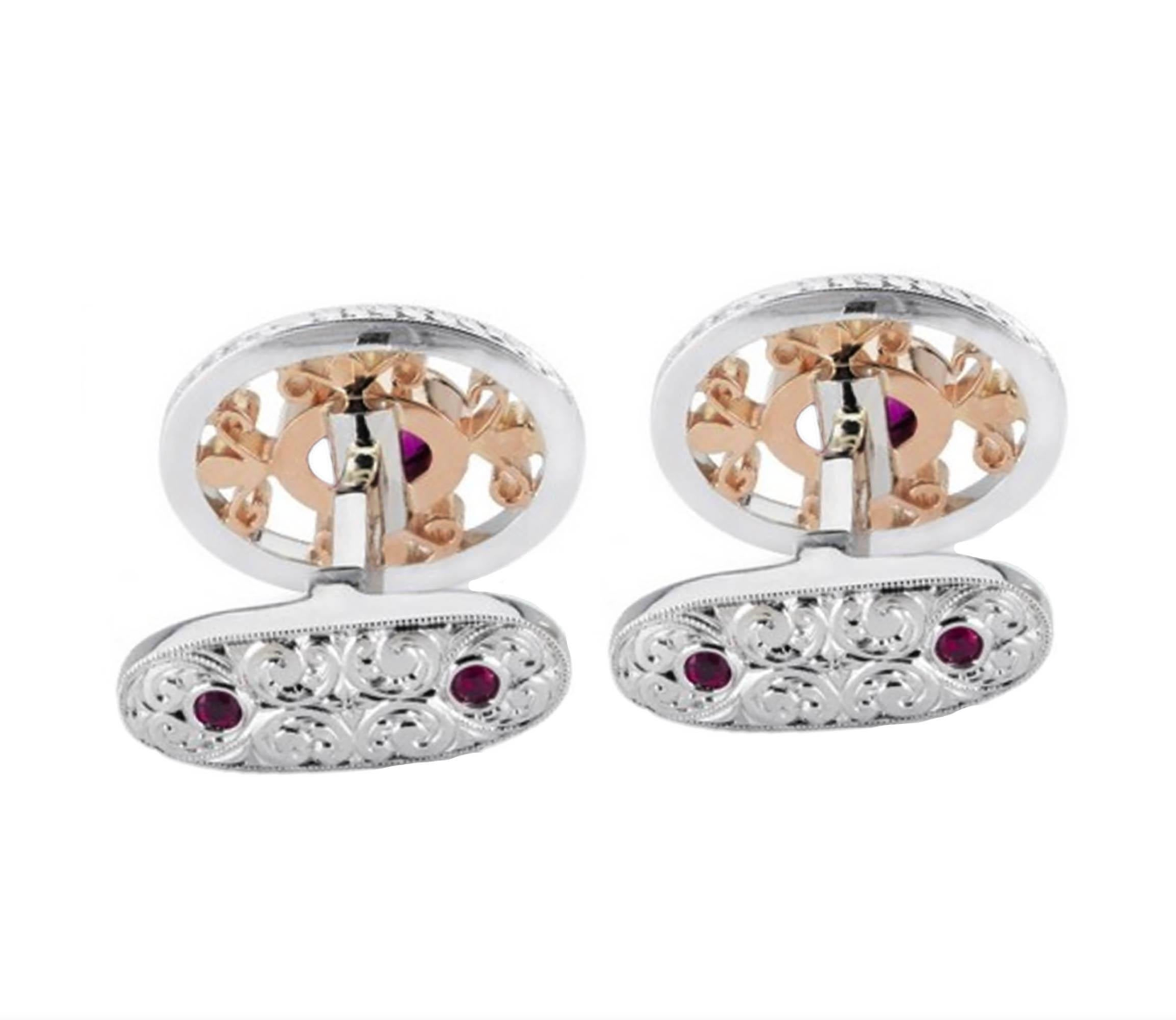 Michael Beaudry Fleur-de-Lis Ruby Diamond Cufflinks GIA