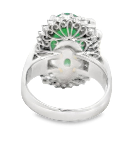 Platinum Green Jade Ring with 11.44 Carat Gemstone and 1.95 Carat Fancy Cut Diamonds