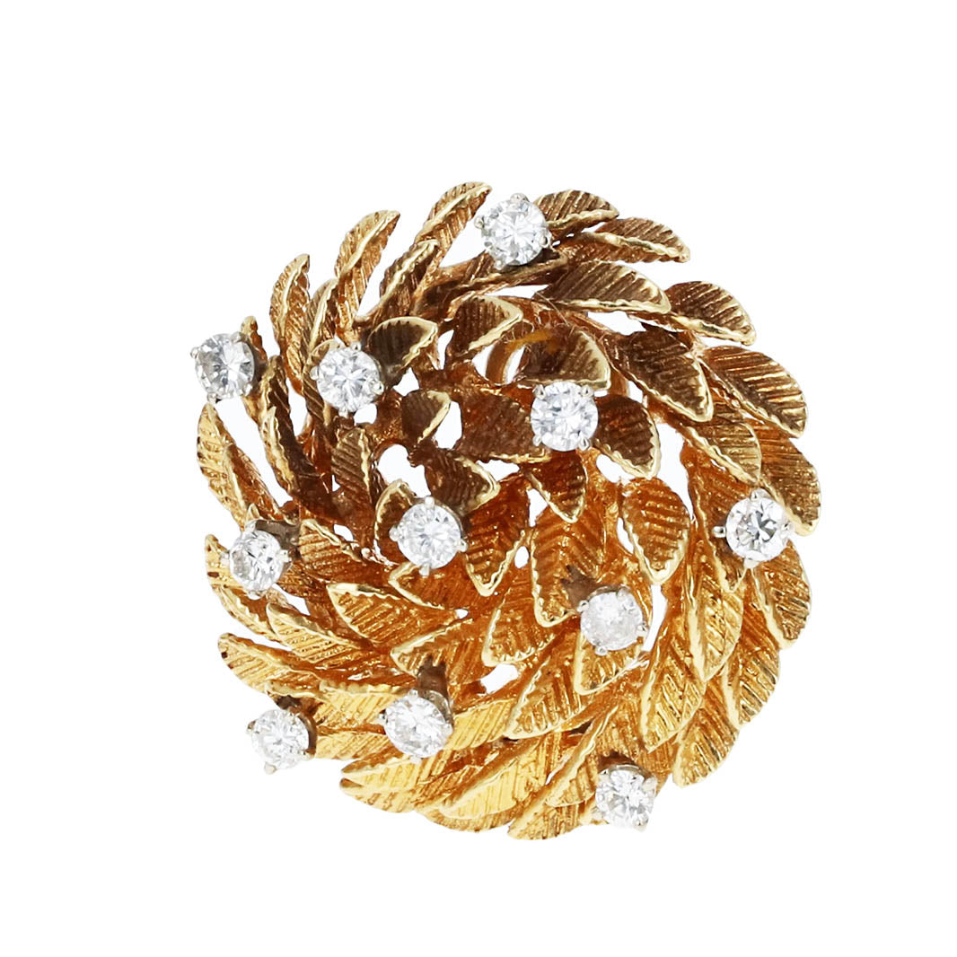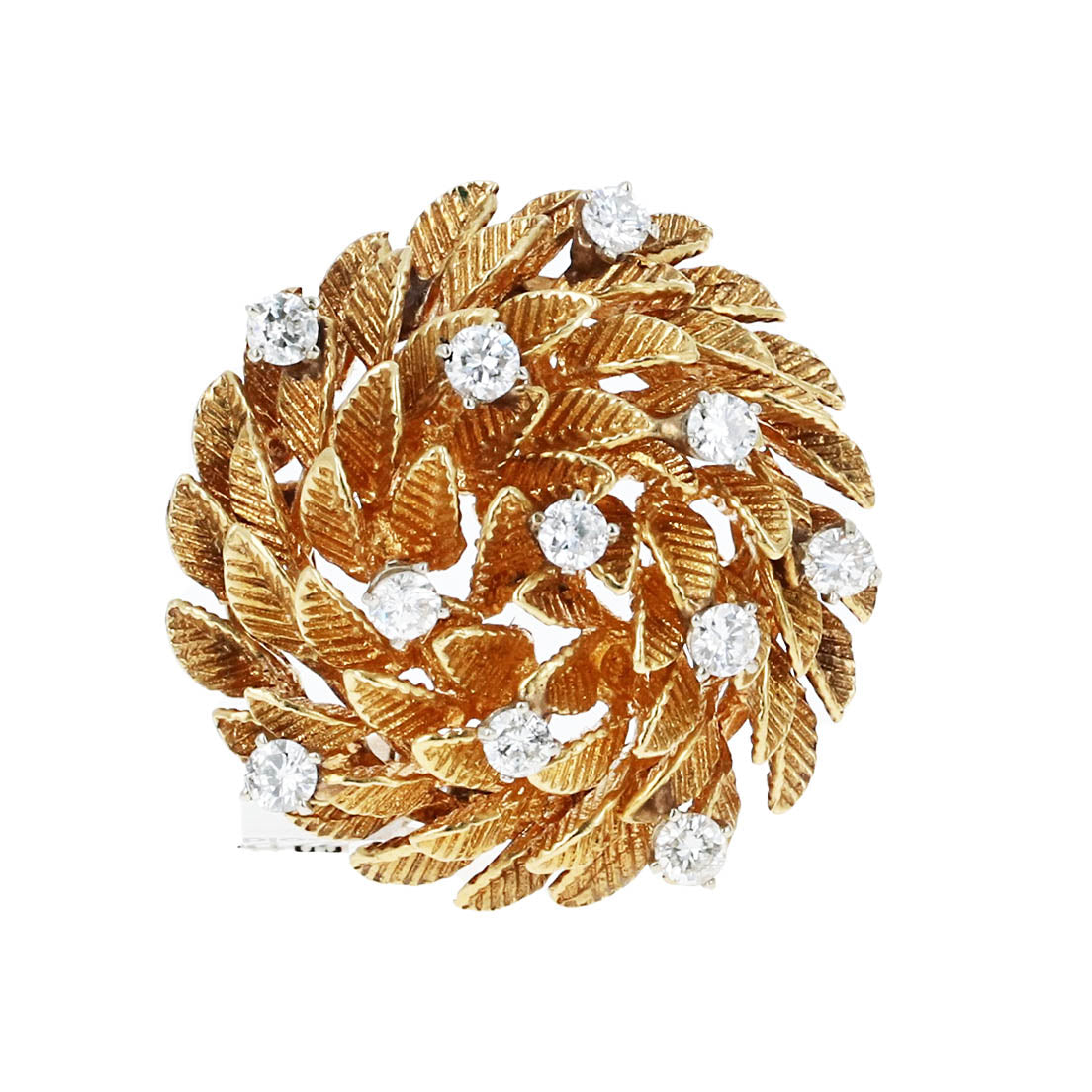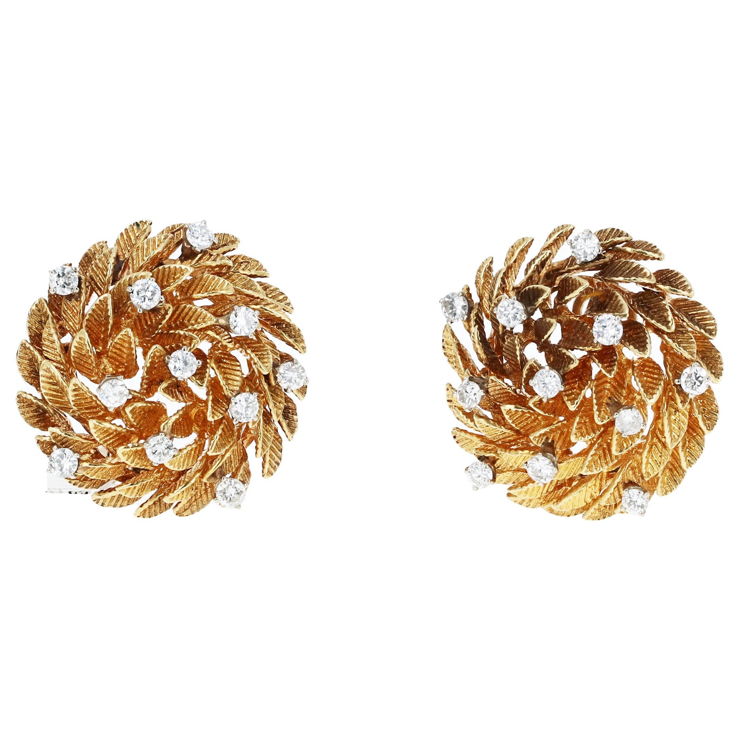Retro 14k Gold and 1.76 Carat Diamond Clip-On Lever-Back Stud Floral Swirl Design Earrings